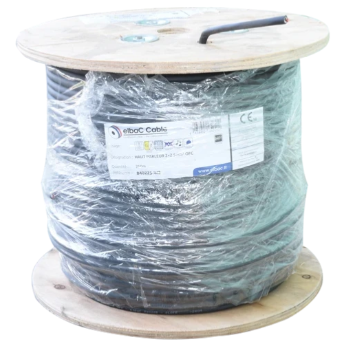 Câble HP 2x2.5 PVC Noir intérieur bobine bois 250 M