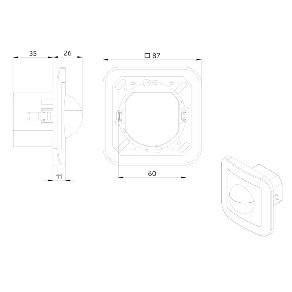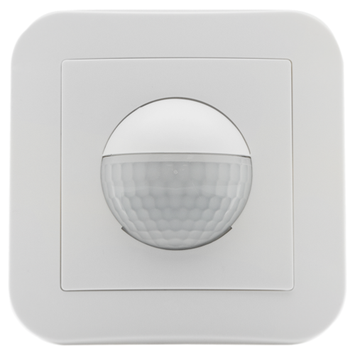Détecteur de mouvement mural encastré avec capteur acoustique en 3 fils contact NO, possibilité de paramétrer individuellement le capteur acoustique.