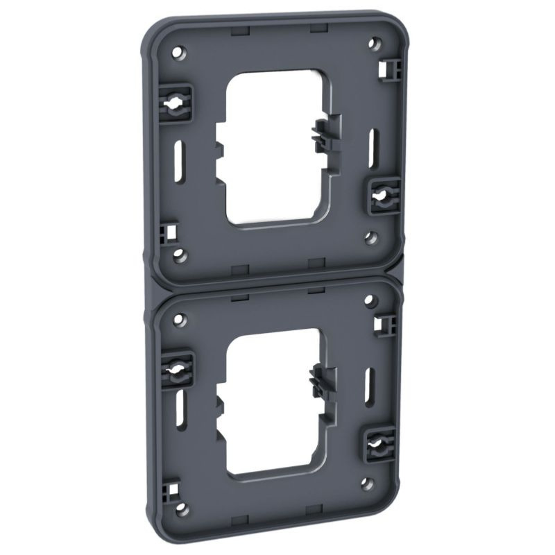 Cadre support double vertical gris IP55 pour mécanismes encastrés de la gamme OXXO.